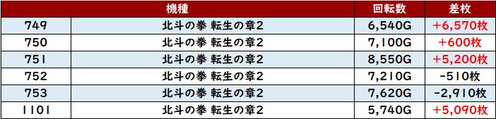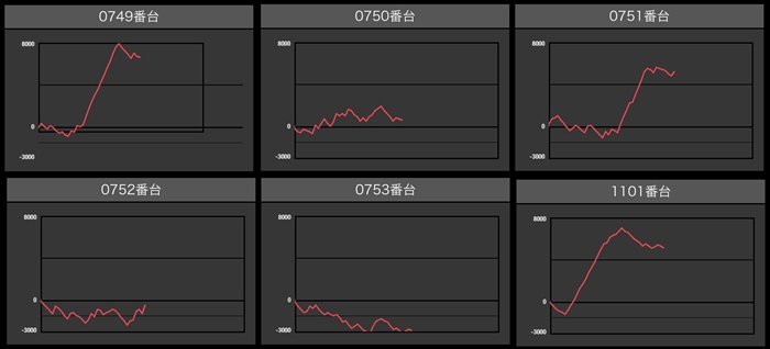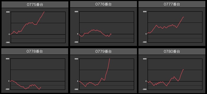 半数以上が差枚数+4,000枚超えの凄まじい出玉感となっており、中には差枚数+15,770枚と頭一つ抜けた出玉感まで見受けられた!