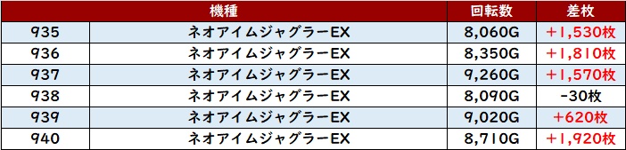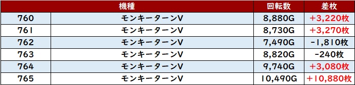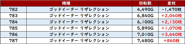 こちらも回転数1万G超えが見られる程の高稼働となっており、差枚数+10,880枚を筆頭に優秀な出玉感で溢れていた。