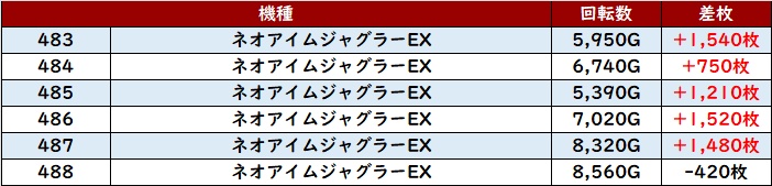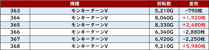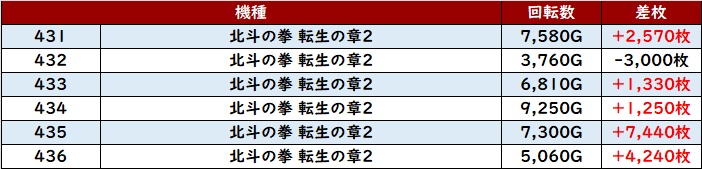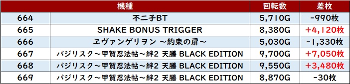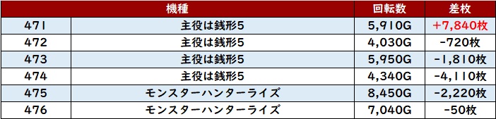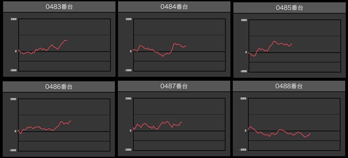 こちらも6台中5台が大幅プラス差枚と高い勝率を誇り、好調さを周囲にアピールしていた。