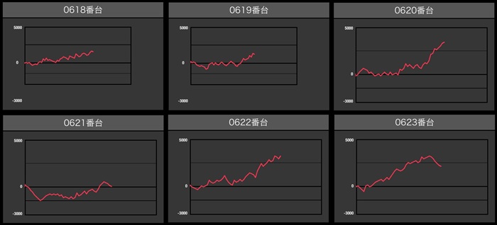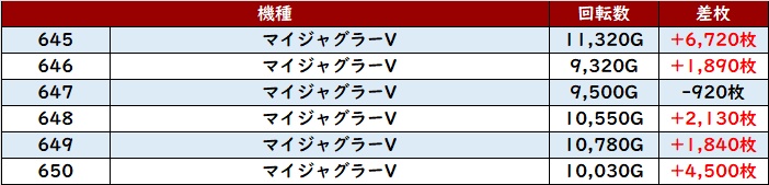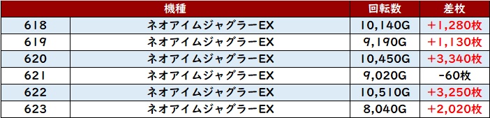 まずは「ネオアイム 618~623」「マイジャグ5 645~650」と「ジャグラーシリーズ」が絶好調に!