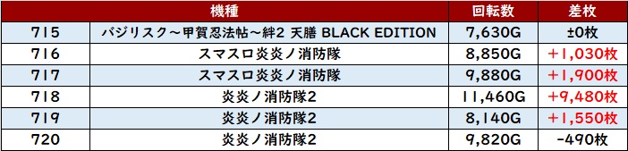 続いて「バジ絆2天膳~炎炎2 715~720」が3機種を跨いで大盛り上がり!