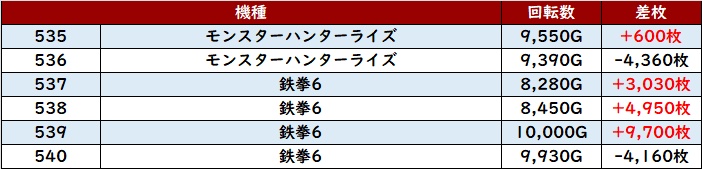 また「モンハンライズ~鉄拳6 535~540」も機種を跨いで絶好調!