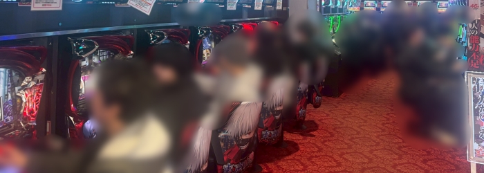 朝イチは「東京喰種」「モンキー5」「ヴヴヴ2」「北斗転生2」「スマスロ化物語」「炎炎2」「マイジャグ5」などが満台となり、全体の7割が埋まった。