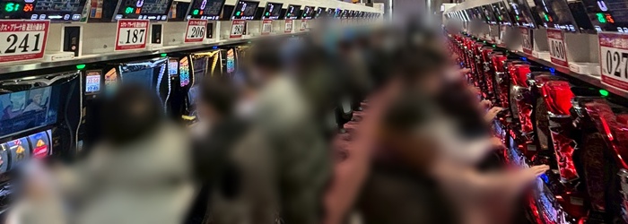 朝イチは「北斗転生2」「東京喰種」「モンキー5」「マギレコ」「スマスロ北斗」「ヴヴヴ2」「新鬼武者3」「ジャグラーシリーズ」等が徐々に埋まっていき、その後全ての機種が満台となった。