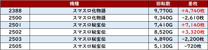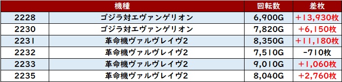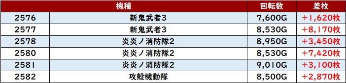 ポテンシャルの高さを遺憾なく発揮し、全台大幅プラス差枚と申し分ない出玉感を披露していた!