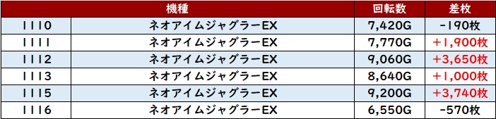 多くの台が回転数9,100G超えや大幅プラス差枚を記録しており、優れた状況であることが窺えた!