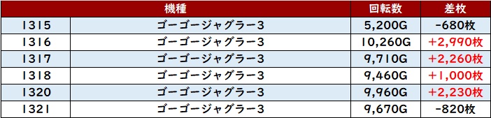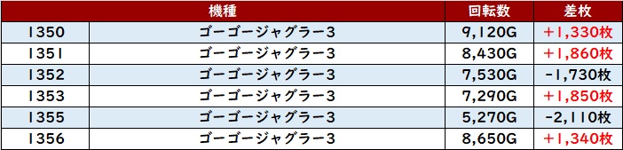 まずは「ゴージャグ3 1315~1321、1350~1356」が大健闘!