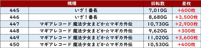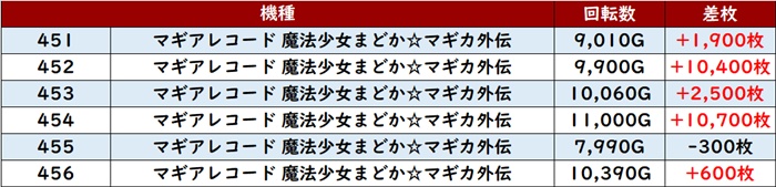 更に「マギレコ 451~456」の半数以上が回転数1万G超えの凄まじい稼働状況に!