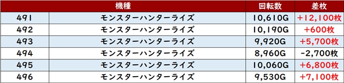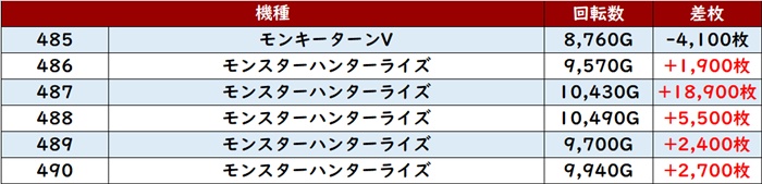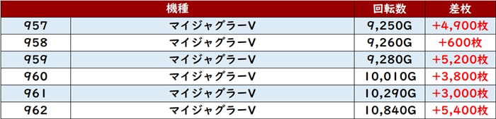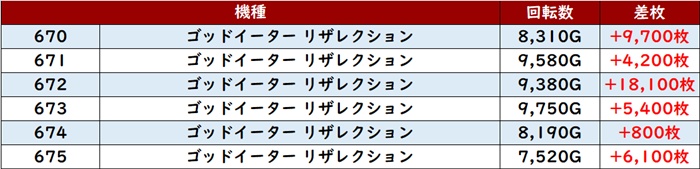 その稼働によってポテンシャルの高さが引き出され、差枚数+1万枚超えの台を2台も確認することができた。