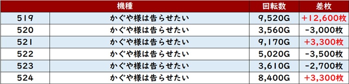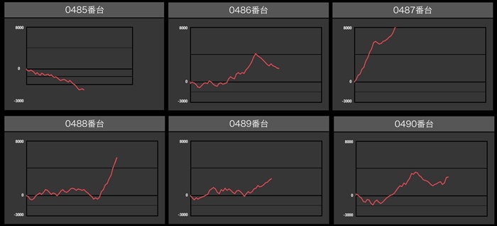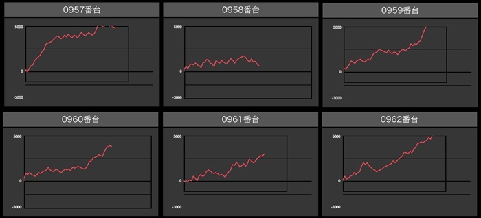 ・スロット集計機種計54台総差枚数:+195,000枚