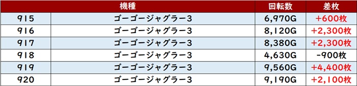 ・1台あたりの平均差玉数:+3,920玉