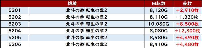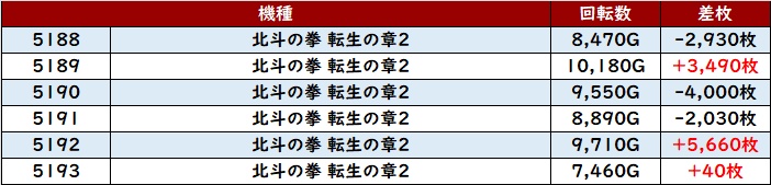 まずは「北斗転生2」が3箇所で優秀な結果を残す!