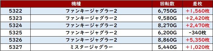 続いて「ファンキー2~ミスター 5322~5327」が機種を跨いで盛況に!