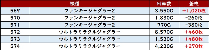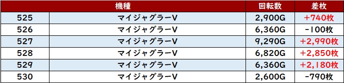 6台中5台がプラス差枚と優れた稼働率や出玉感を記録し、店内の盛り上がりの火付け役を担った!