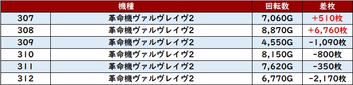 差枚数+13,970枚を中心に6台中4台が差枚数+2,600枚超えを記録し、皆の視線を奪っていた!