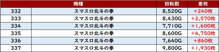 続いて「スマスロ北斗 332~337」が絶好調に!