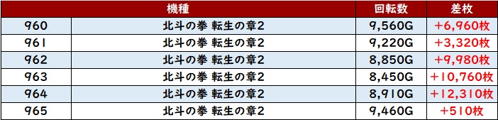 まずは「北斗転生2 960~965」がポテンシャルの高さを遺憾なく発揮!