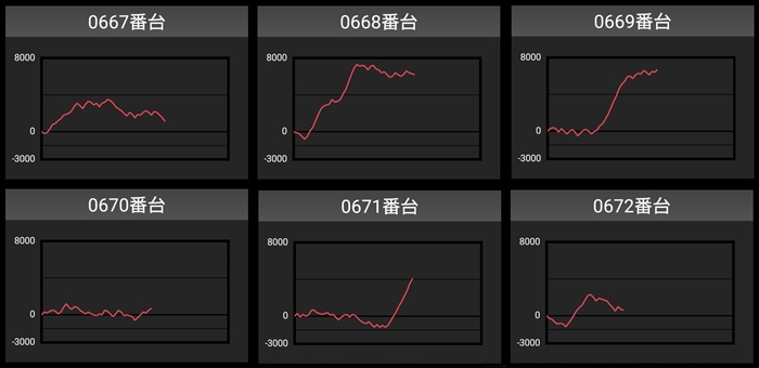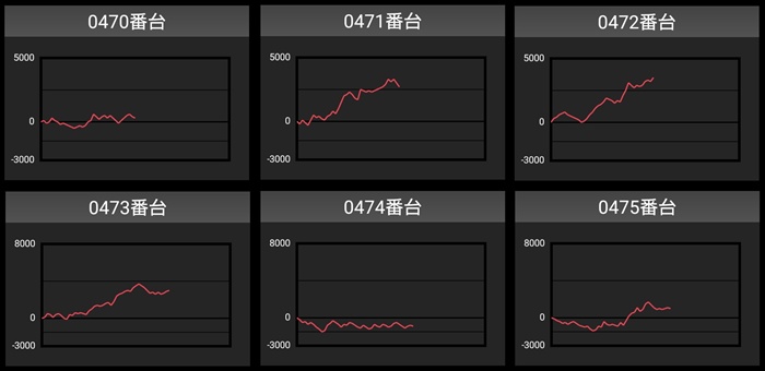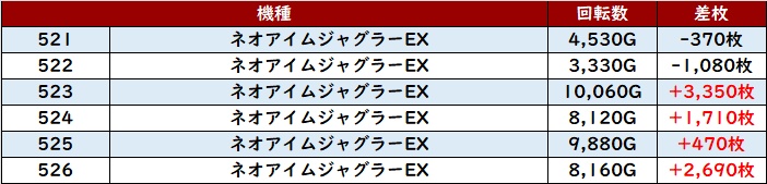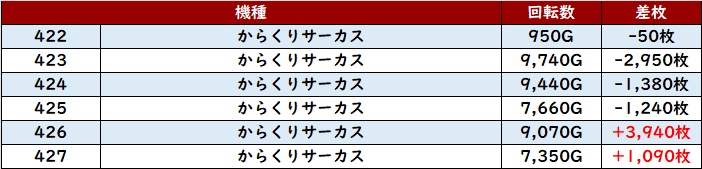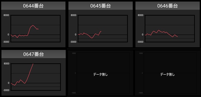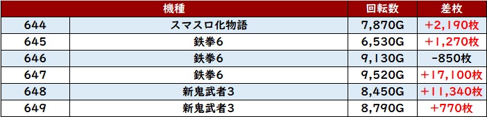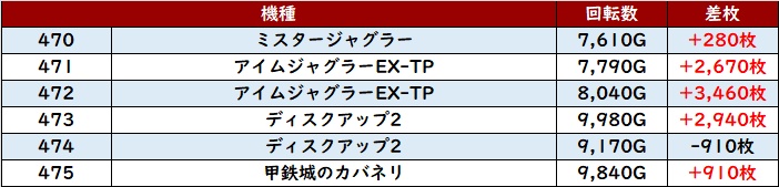 しっかり回されたことで持ち前のポテンシャルが引き出され、全台プラス差枚且つ半数が差枚数+4,000枚超えと素晴らしい光景を演出した。