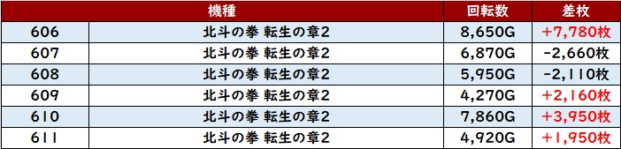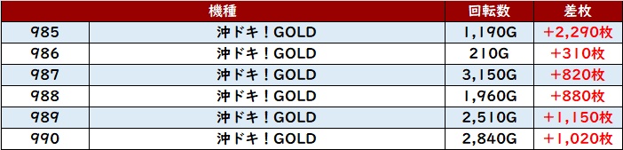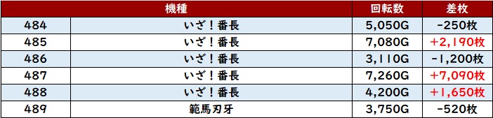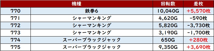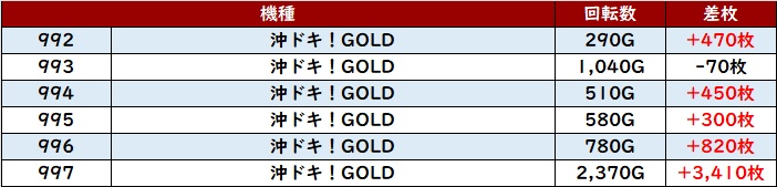 平均差枚数+7,010枚を筆頭に差枚数+3,700枚超えが大半を占め、素晴らしい盛り上がりを見せていた!