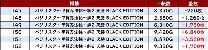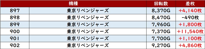 展開に恵まれなかった台を含め、全台回転数8,300G超えと朝からぶん回されており、状況の良さは間違いなかったのであろう。