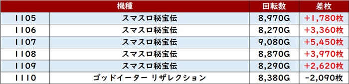 まずは「スマスロ秘宝伝~スマスロゴッドイーター 1105~1110」がポテンシャルの高さをアピール!