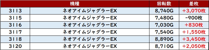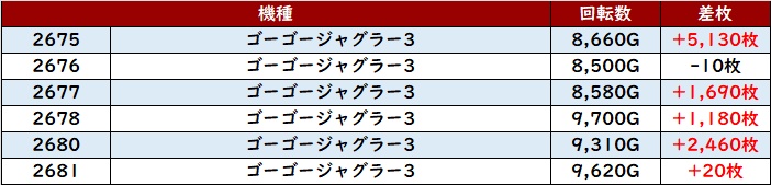 続いて「マイジャグ5 2788~2805」が全台大幅プラス差枚と安定感抜群の結果に!