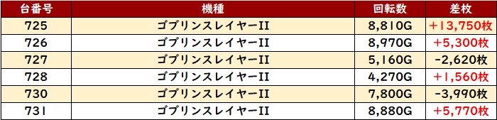 今回は「ゴブスレ2」の半数が回転数8,800G超えの高稼働を記録!