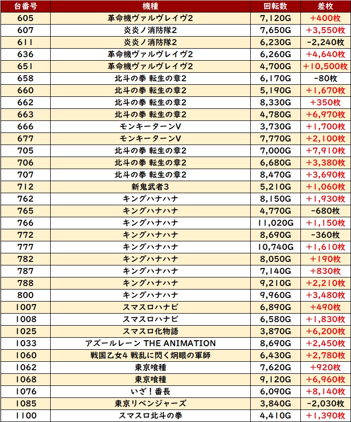 その他の好調台については「北斗転生2」「キンハナ」から素晴らしい結果の数々が散見され、ユーザー達の満足度に繋げていた!