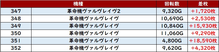 まずは「ヴヴヴ2~ヴヴヴ 347~352」の半数が回転数1万G超えに!