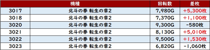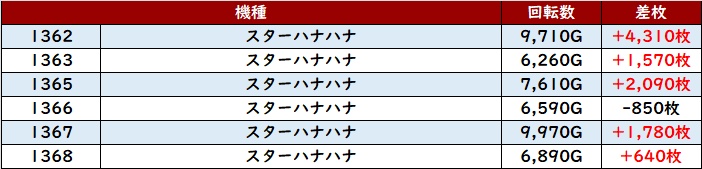 2ボックス目は「北斗暴凶星」の半数以上がプラス差玉に!