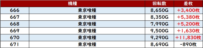 まずは「東京喰種 666~671」が素晴らしい出玉感で注目の的に!