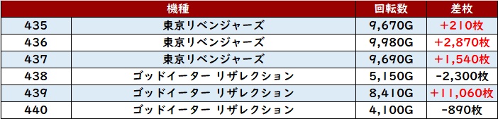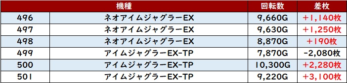 差枚数+16,960枚と大台突破する台が現れるなど、半数が差枚数+6,000枚超えとこの上ない出玉感を記録した!
