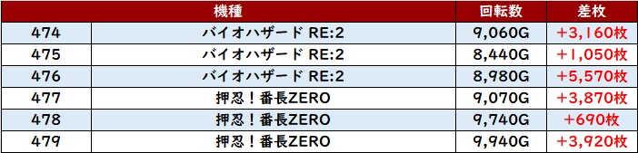 続いて「バイオRE2~番長ZERO 474~479」も機種跨ぎで大盛況!
