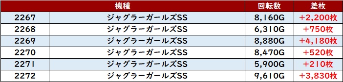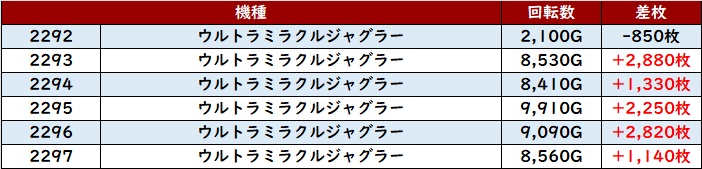 全台大幅プラス差枚と文句無しの結果を残し、輝かしい活躍ぶりを見せつけていた!