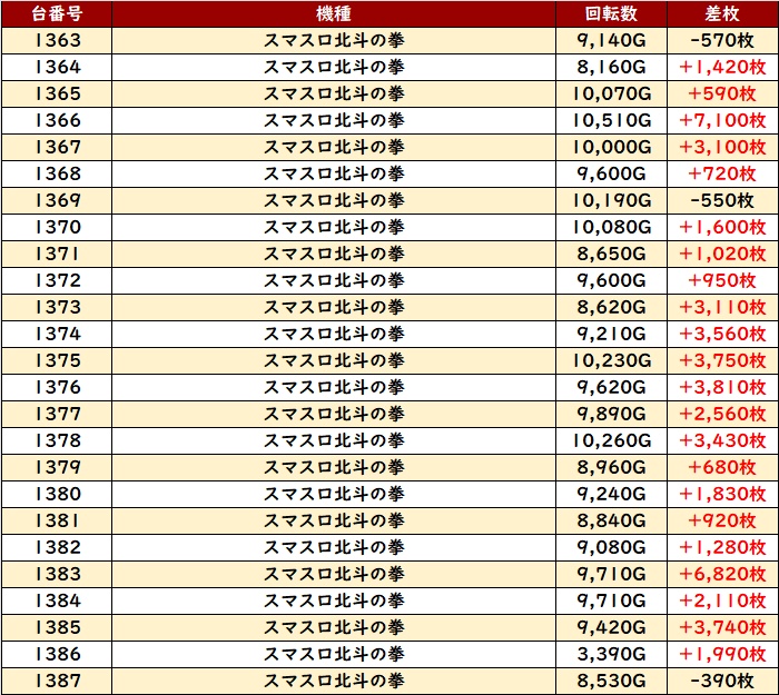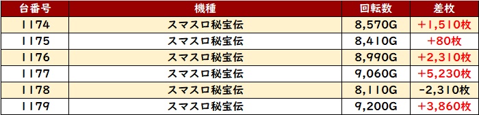 今回は「スマスロ北斗」のボックスから好調台を多数確認!
