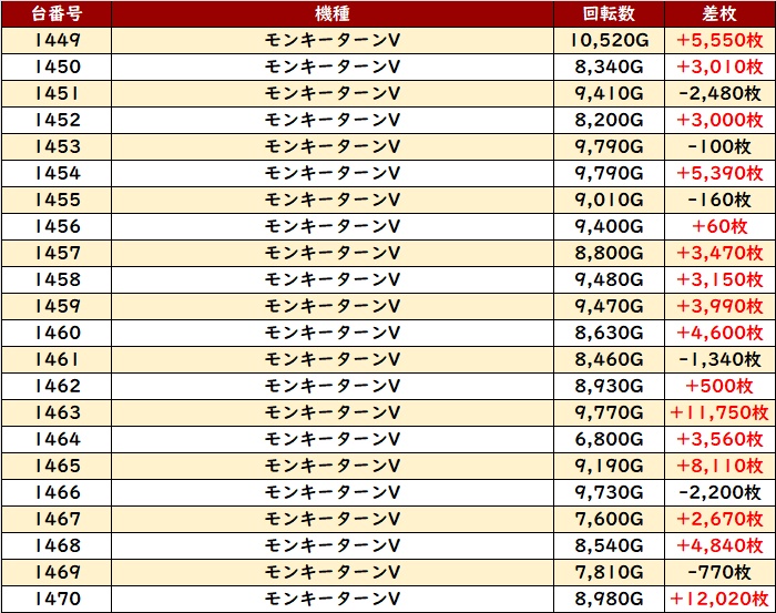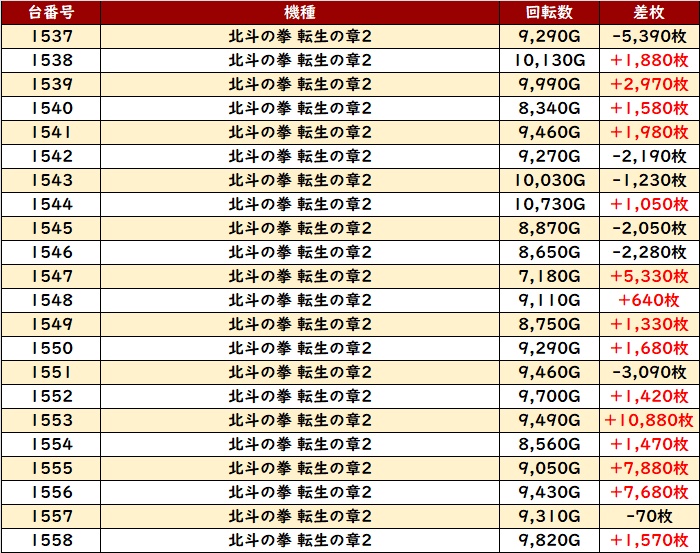 殆どの台が回転数8,100G超え、そしてプラス差枚を収めており、誰もが状況の良さを感じられたことだろう!