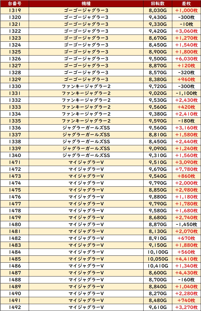 その他にも「ジャグラーシリーズ」から数多くの好調台が見られ、タイプ問わずユーザーが満足できるような状況となっていた。