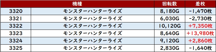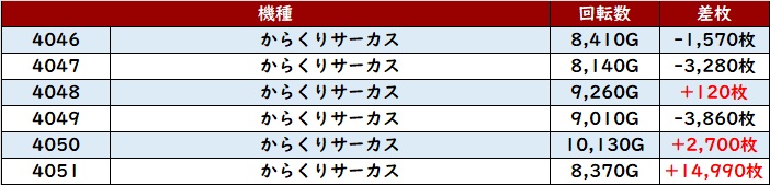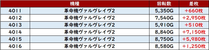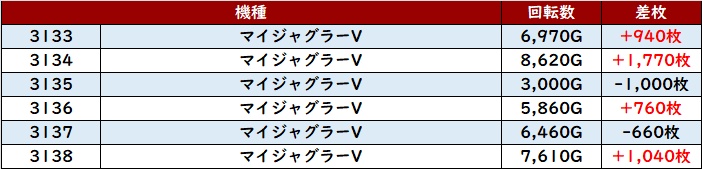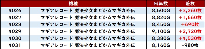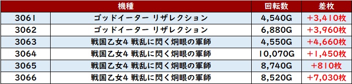 6台中5台が差枚数+2,000枚超え且つ差枚数+14,640枚と極上の出玉感が見られ、圧巻の盛り上がりを見せていた。