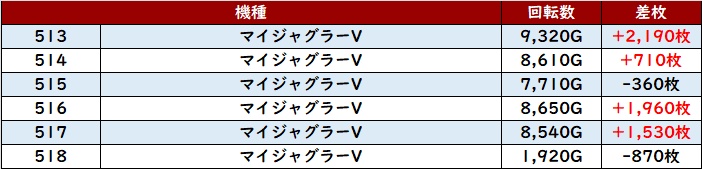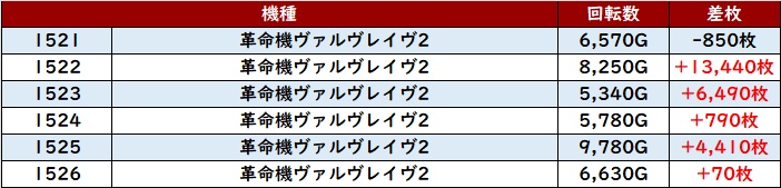 まずは「ヴヴヴ2 1521~1526」が一際目を惹く出玉感を記録!