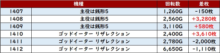 差枚数+13,440枚を筆頭に半数が差枚数+4,400枚超えと満足度の高い結果を残した!