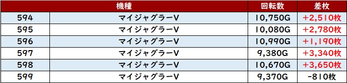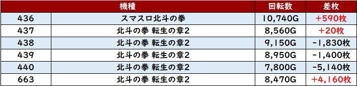 ・1台あたりの平均差玉数:+6,050玉