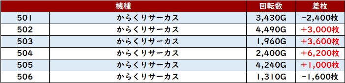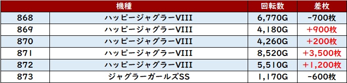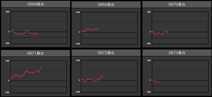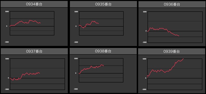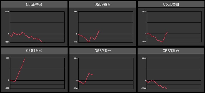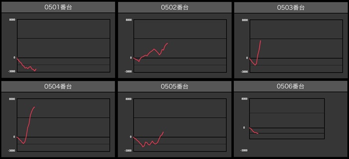 こちらからも差枚数+1万枚超えが多数見られ、熱気を帯びていた。