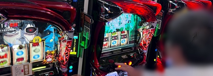 朝イチは「モンキー5」「東京喰種」「炎炎2」「スマスロ化物語」「防振り」「ToLOVEるトランス」「ファンキー2」が満台でスタートした。