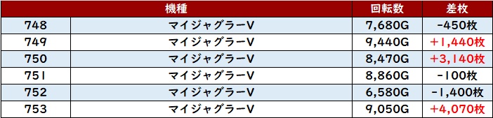 その稼働と状況の良さが噛み合い、計12台中11台がプラス差枚と素晴らしい結果を残していた。
