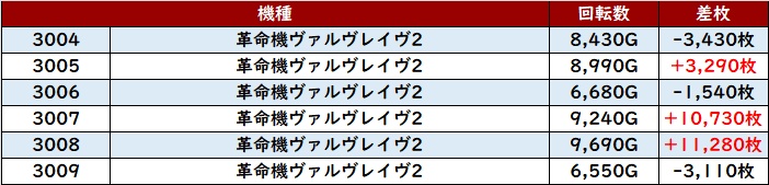 差枚数+9,260枚を筆頭に多くの台が大きく出玉感を伸ばし、こちらも目を惹く一角となっていた!