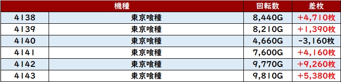 今回は「スマスロ北斗~北斗転生2」「東京喰種」「乙女47 299」などが活躍!