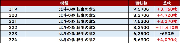 まずは「北斗転生2 319~324、341~346」2箇所にわたって大盛況に!