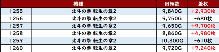 更に「スマスロ北斗 1272~1277」が6台中5台が大幅プラス差枚と絶好調!