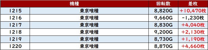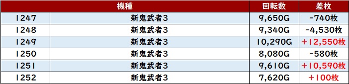 なんと差枚数+1.2万枚超えの台が2台も見られ、圧倒的な存在感を放っていた。