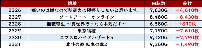 その稼働も相まって全台大幅プラス差枚を記録し、ユーザー達の満足度に直結させていた!